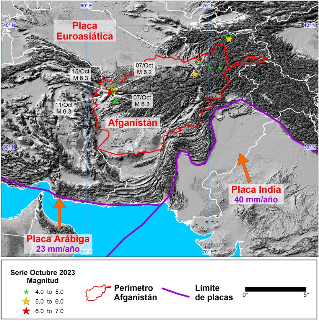 En la primera quincena del mes de octubre se han registrado un total de 33 terremotos en la zona de Afganistán, según figura en las bases de datos del GFZ German Research Centre for Geosciences. En total 13 de estos eventos han tenido un magnitud superior o igual a 5, siendo el terremoto de mayor magnitud (6.31 Mw), el que se registró la noche del sábado 15 a las 03:36 UTC.